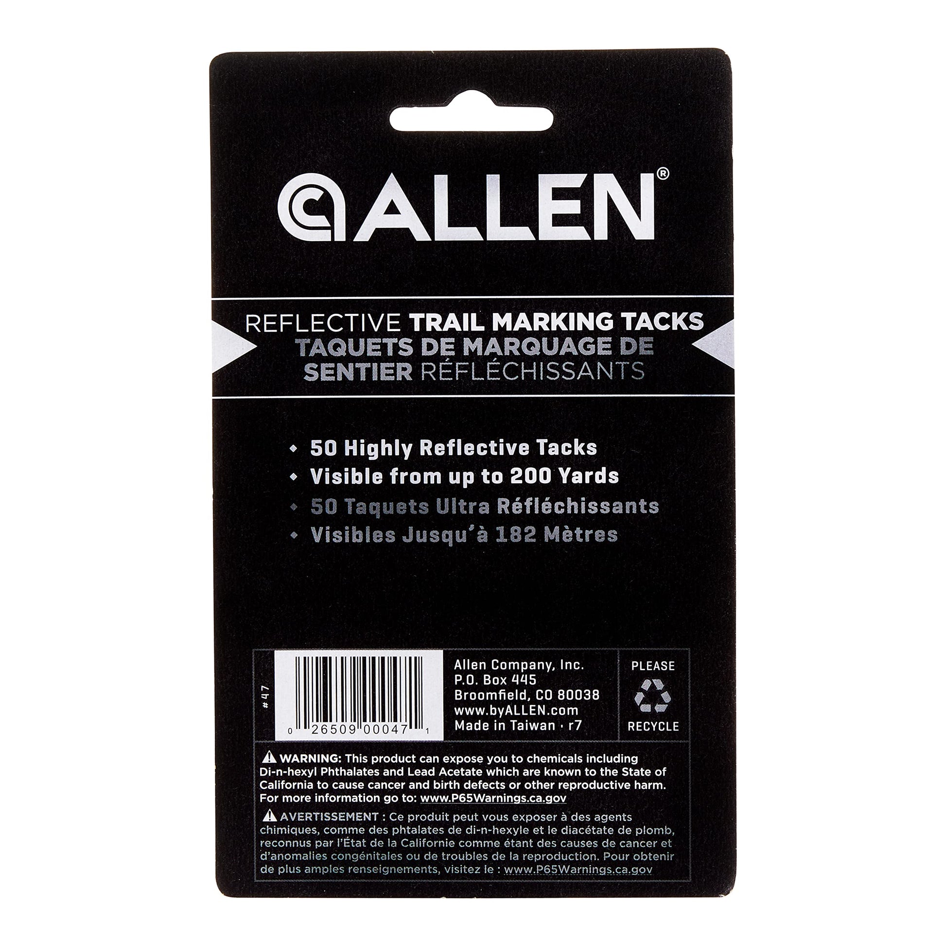 Details: The Trail Marking Tacks from Allen are highly reflective tacks that can be seen for up to 200 yards so you don’t have to worry about getting lost in the dark in the woods again. Perfect for hunting, camping, or hiking, or marking important spots, these white faced tacks can be seen day or night. Easily push into a tree or the ground with your thumb, and the nearly 1/2″ face stands out – you can even leave these tacks on your trail season after season. Includes 50 tacks.