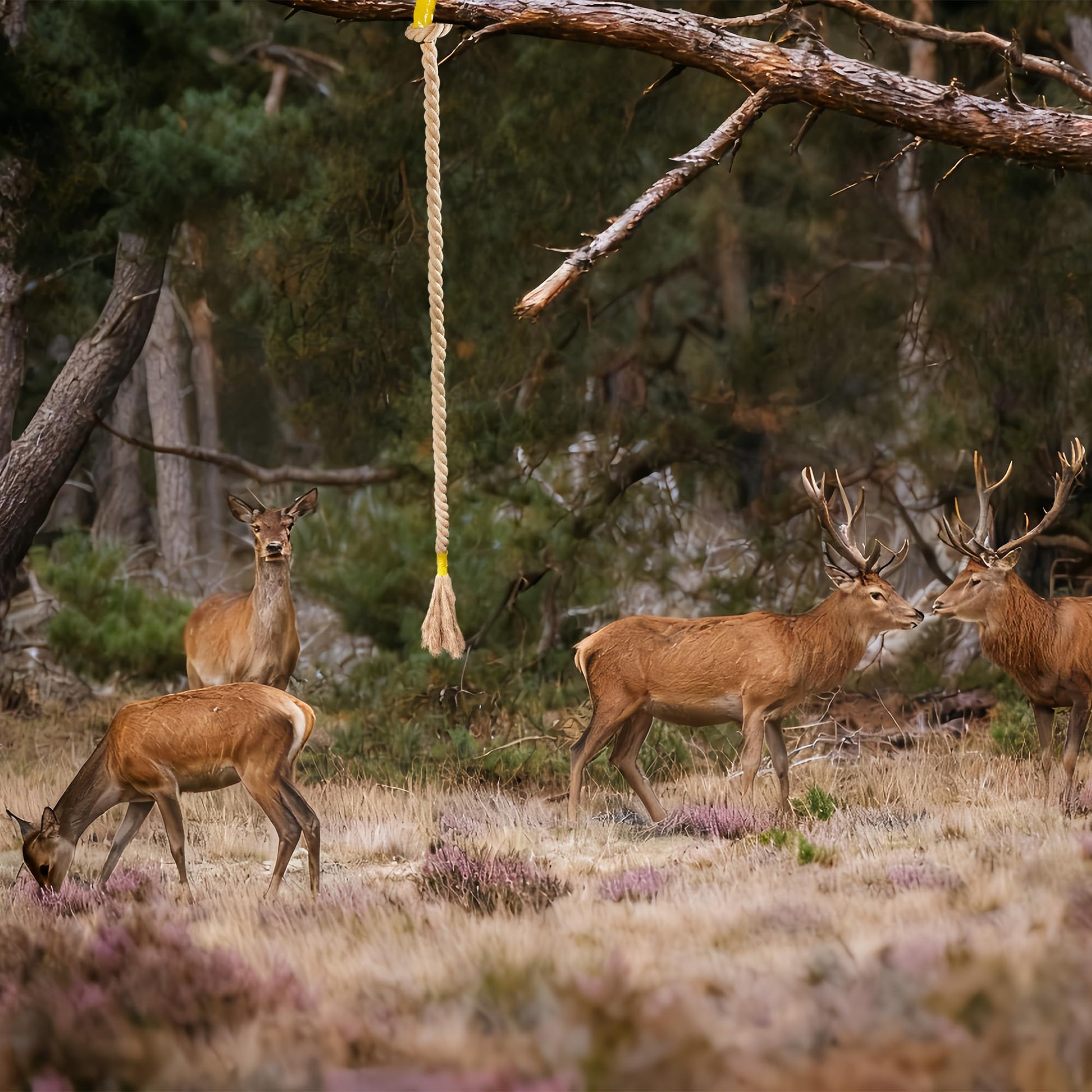 - Multiple Uses: You can hang it above the simulated scraping area to attract deer closer. You can also use hempscent rope to attract deer to approach, allowing you to observe their natural behavior at a short distance and increase the fun of observing deer