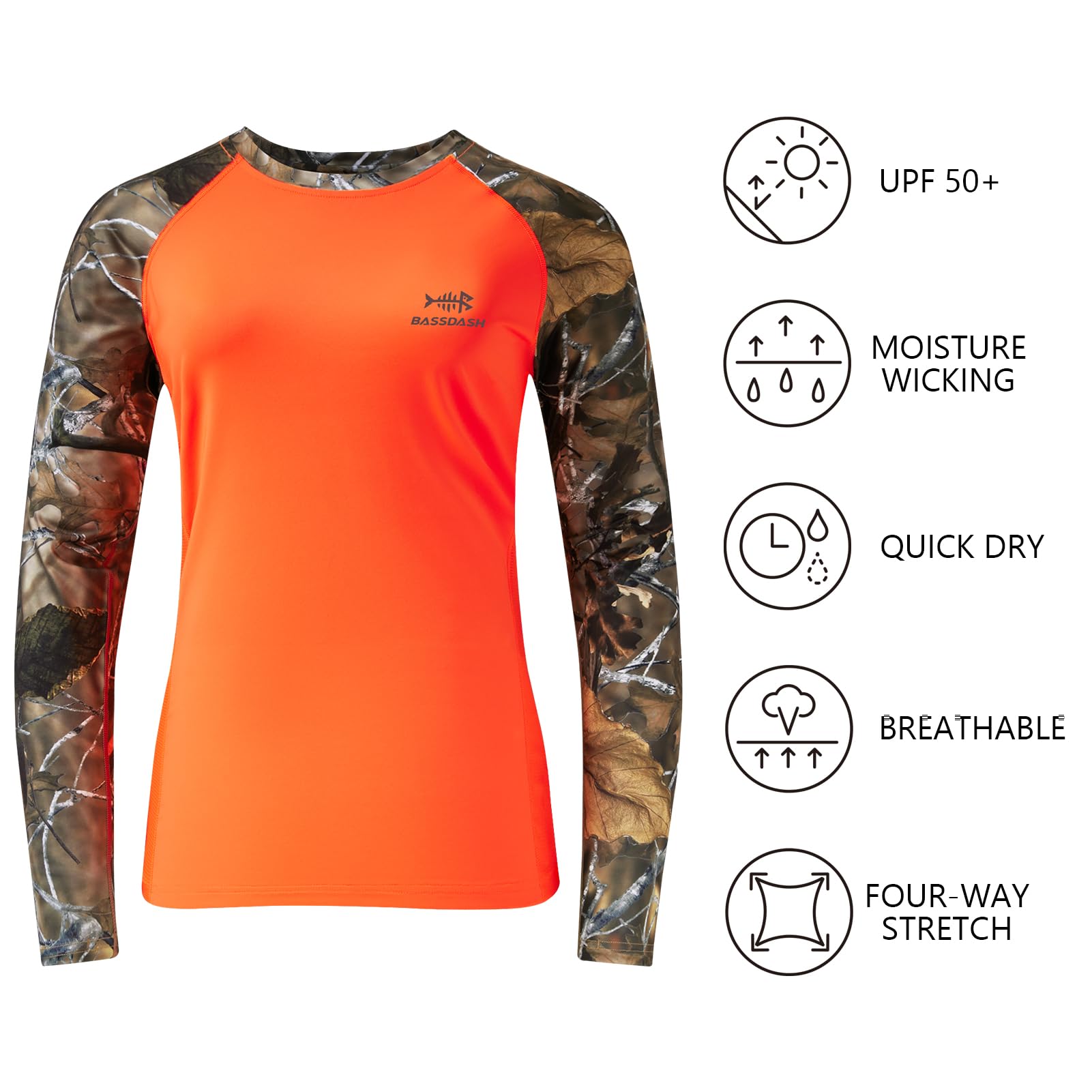 BASSDASH Women’s Camo Hunting Shirt Long Sleeve UPF 50+ Sun Protection Performance Tee Fishing Hiking