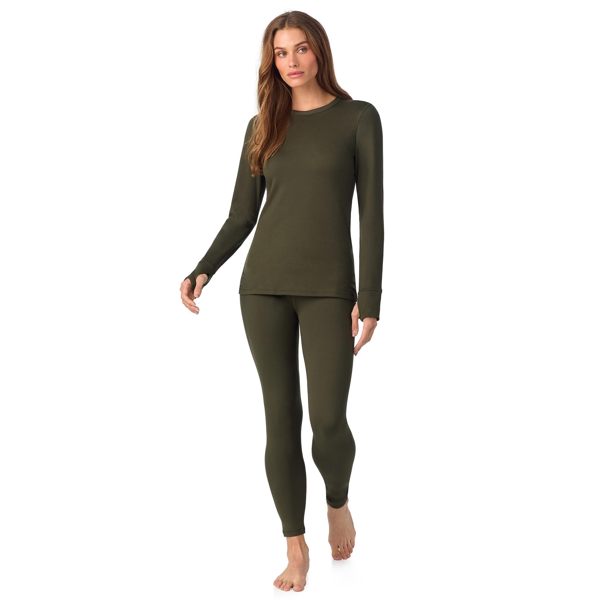 Cuddl Duds Thermal Underwear for Women - Women's Cold Weather Clothes Fleece Lined Thermal Long Johns - Winter Base Layer Clothing Thermal Shirt Top and Leggings Pants 2Pc Set for Women Hunter Green L