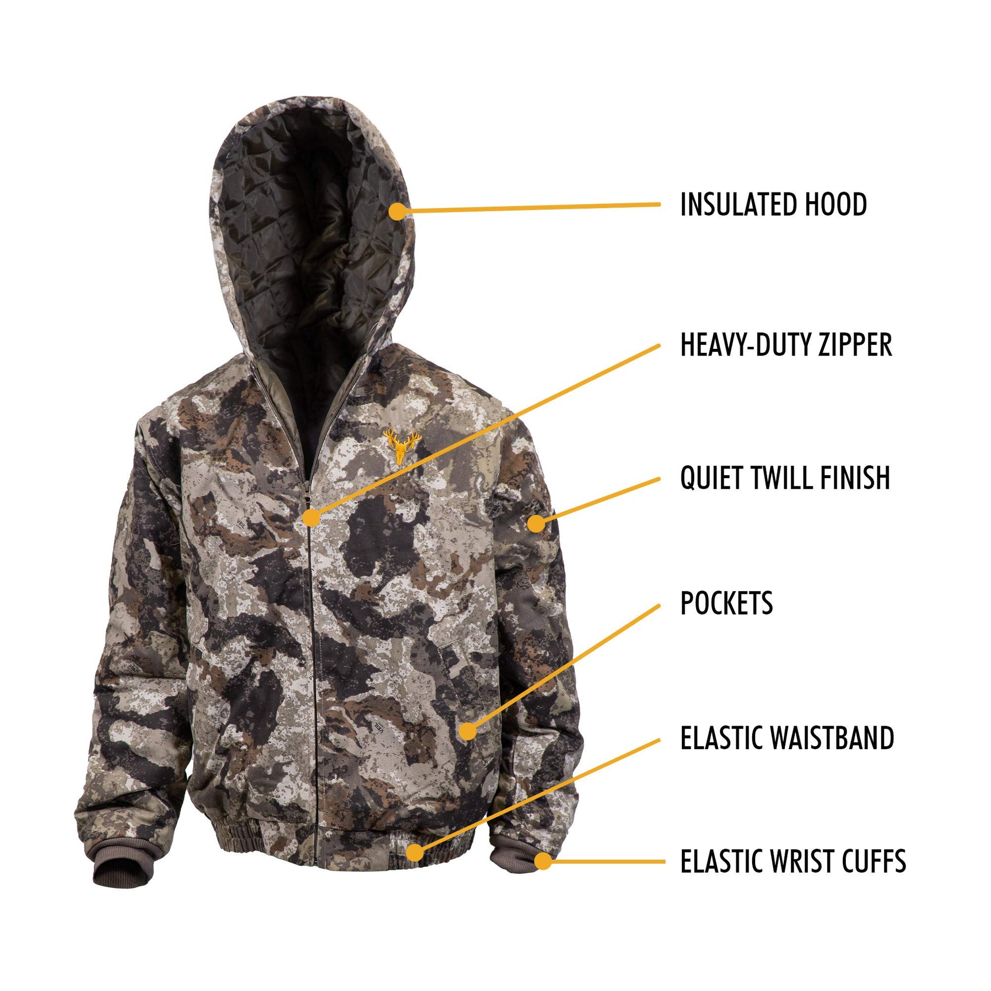 HOT SHOT Youth Insulated Twill Camo Hunting Jacket, Veil-Cervidae Camo with Cotton Shell, for cold weather, bird and deer hunting, Large