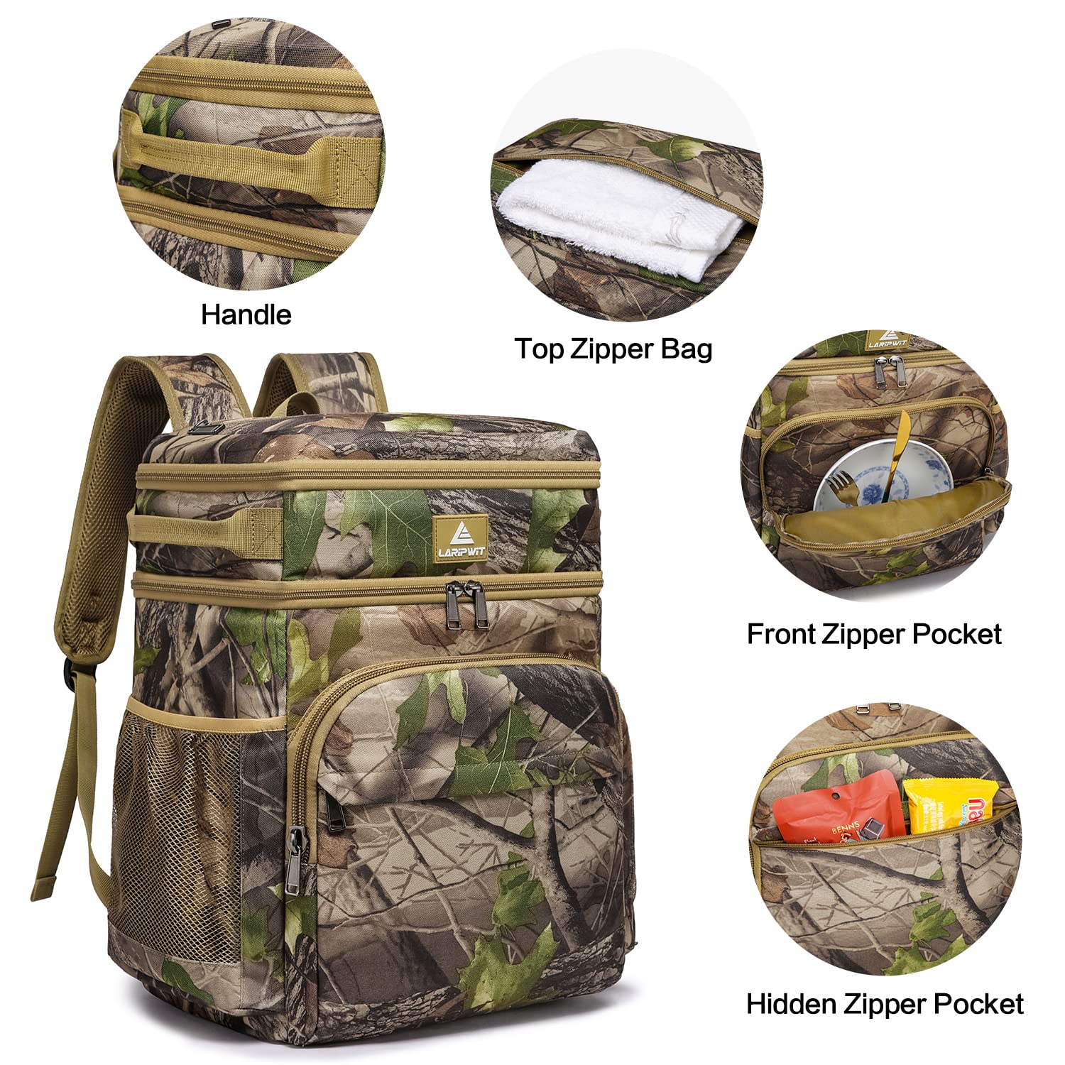 Laripwit 54 Cans Backpack Cooler Insulated Leak-Proof Camo Cooler Backpack Double Deck Lunch Backpack for Men Women - Perfect Tactical Soft Cooler Bag for Camping, Picnic, Beach, Hiking