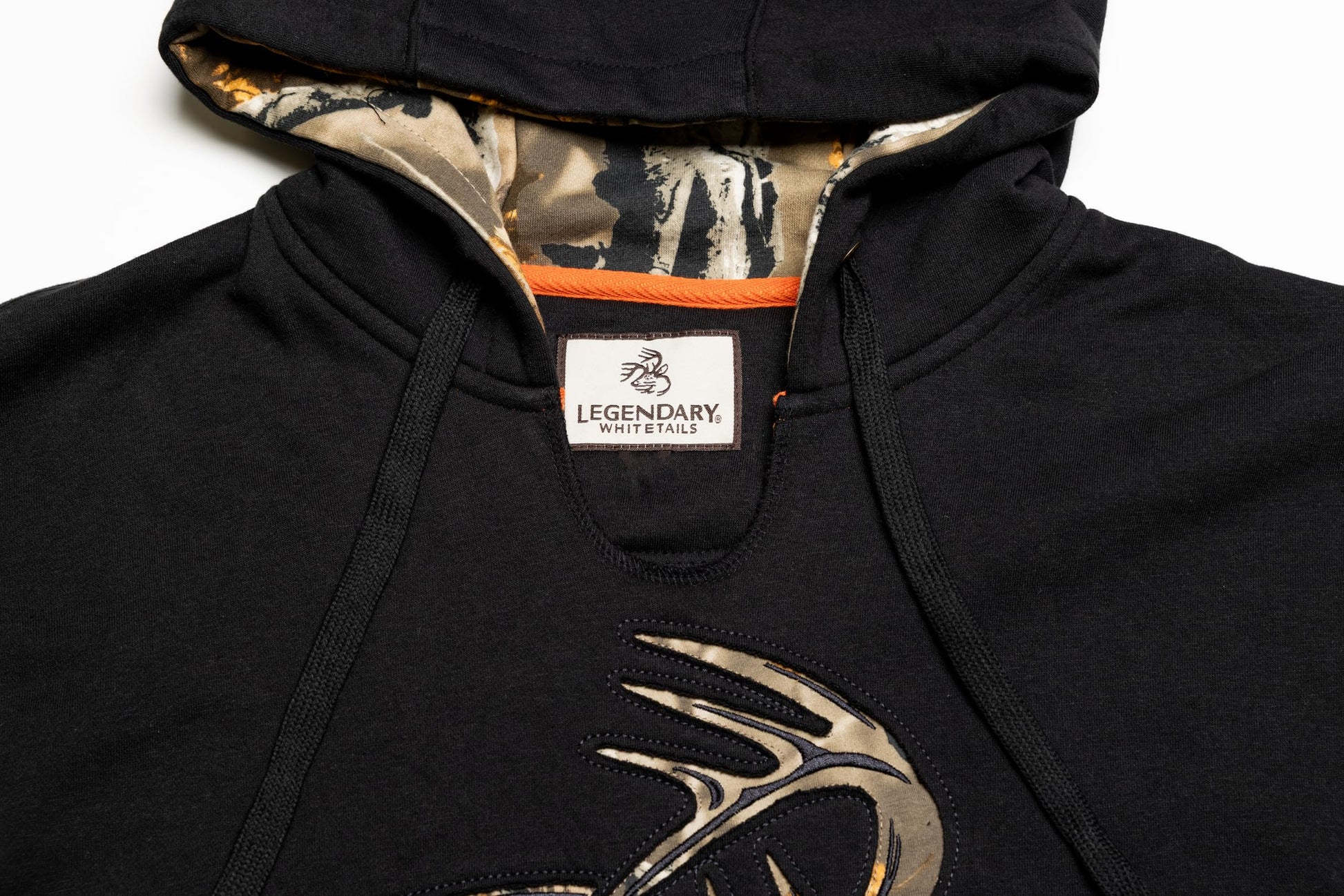 Legendary Whitetails Mens Camo Hoodie Pullover Sweatshirt Midweight V-Neck Design, Onyx, XL