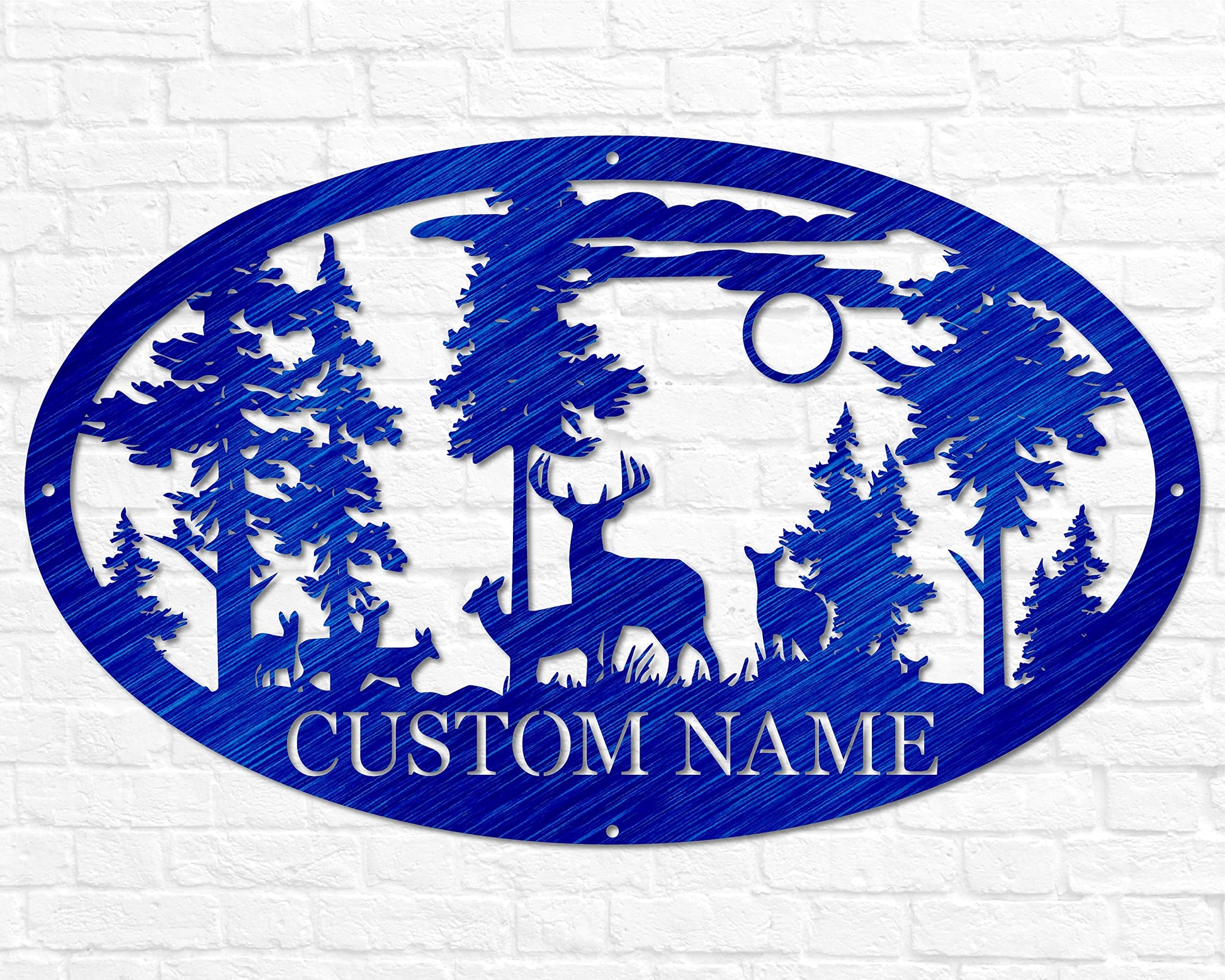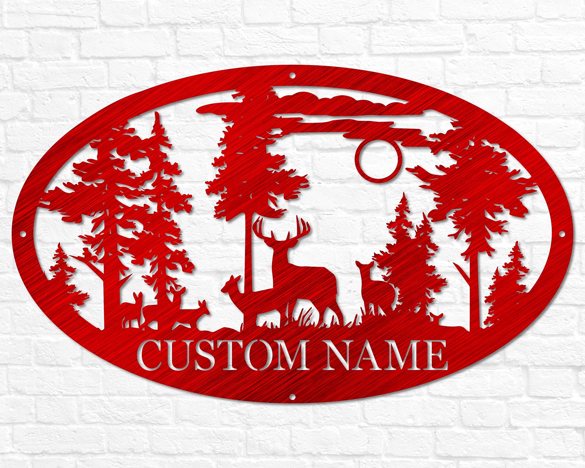 Personalized Oval Deer Metal Cabin Sign | Outdoor Hunting | Deer Hunter Gift | Custom Family Name Sign | Last Name Deer Monogram | Cabin Decor