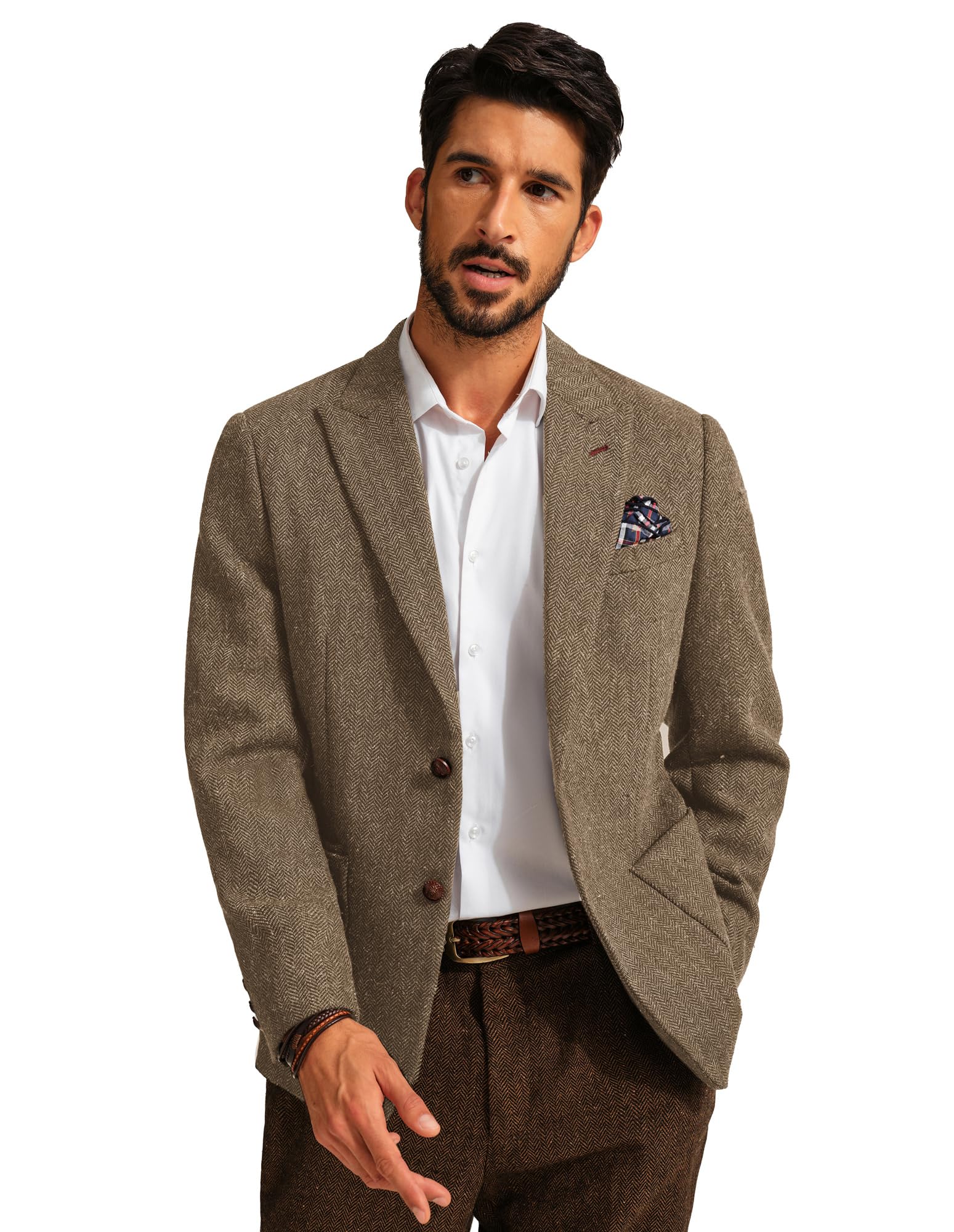 - Timeless Style: Vintage Herringbone Tweed Design - This men's blazer features stylish peaked lapel and a classic herringbone tweed pattern design for a timeless and unique look. The removable pocket scarf on the chest pocket adds a touch of sophistication and elegance to your overall look
