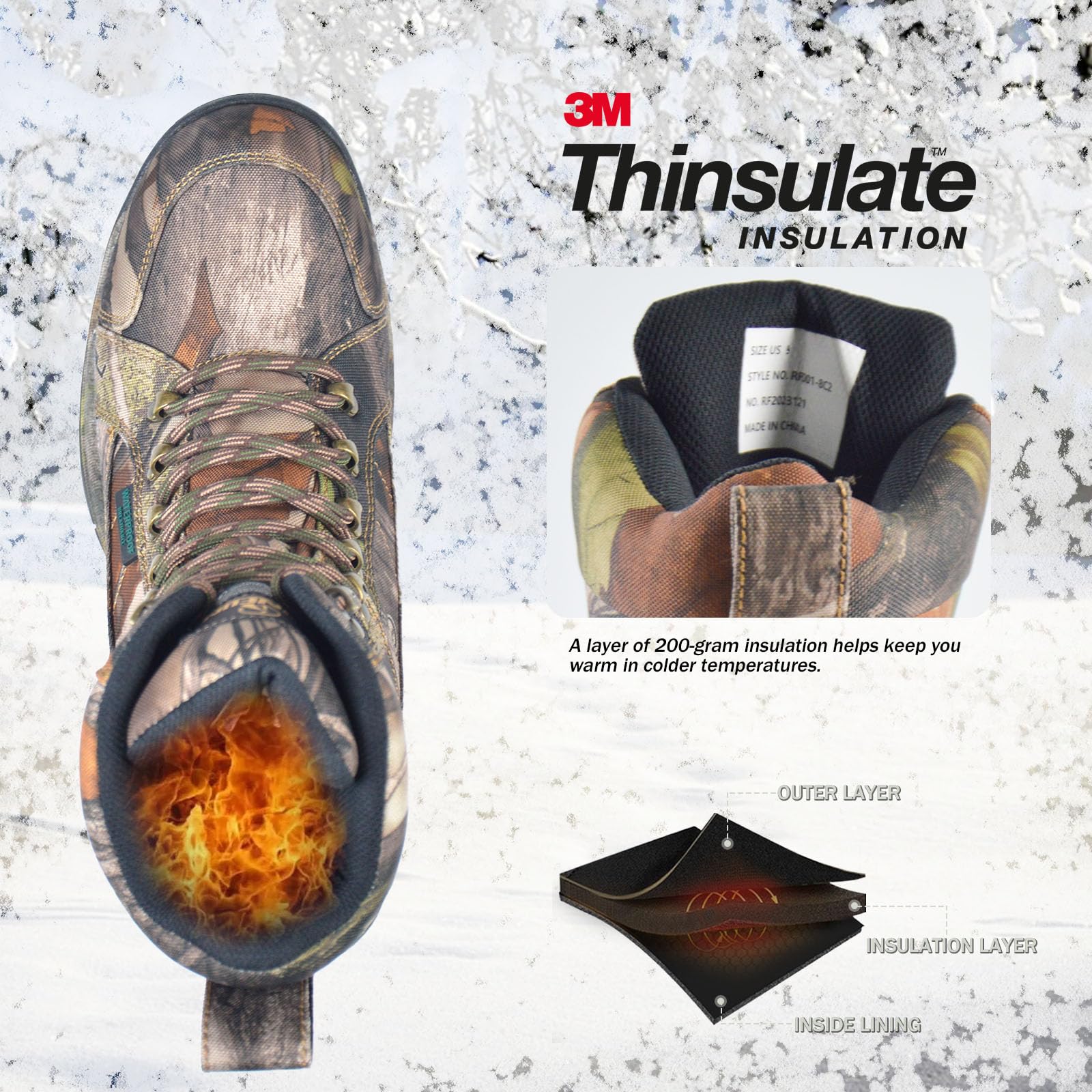 R RUNFUN Men's 8" Waterproof Lightweight Hunting Boots Camo Insulated Hiking Boots, 200g Thinsulate(RF001-8C2,Size10)