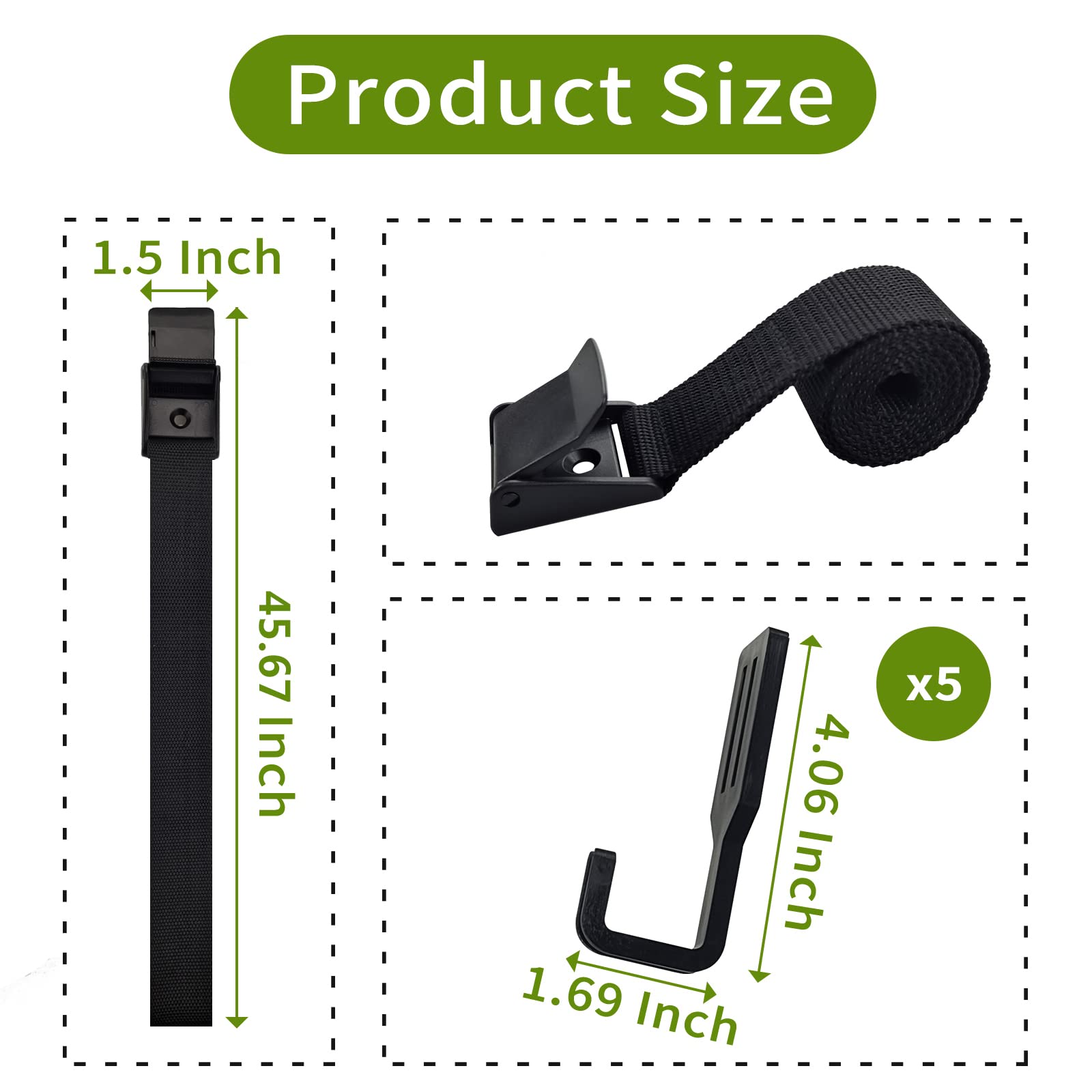 - You will get a belt and five strong PVC accessory hooks.