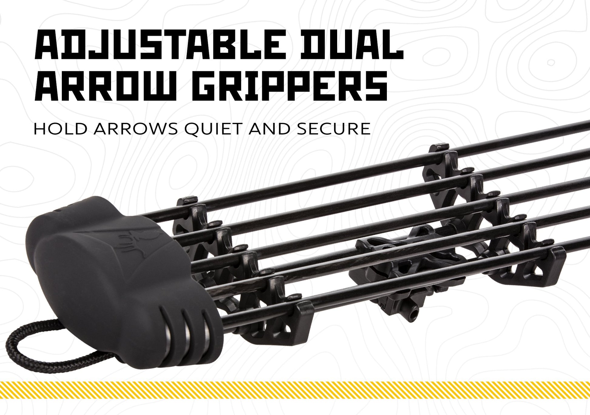 Details: Leave it on your bow or hang it in the tree. The 5-Spot quiver allows you to do either with extreme ease and smart design. The fully adjustable dual arrow grippers hold arrows quiet and secure, the quick detach mounting bracket allows for quick on/off and the hollow hood won't dull or deploy broadheads.