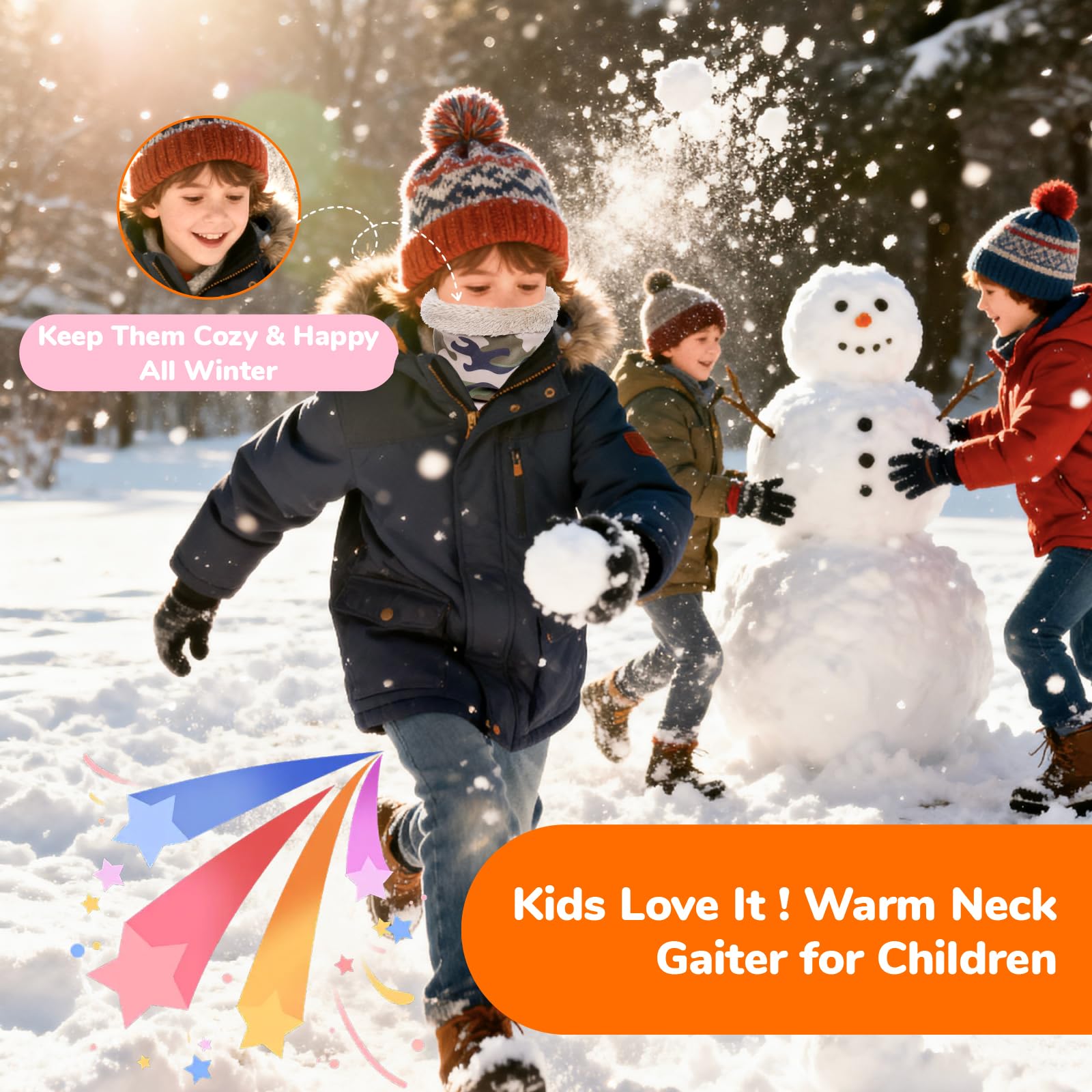 - 【Stylish Versatility】: This double-layered, fleece-lined winter neck warmer combines high elasticity with durability. It can be stretched to function as a neck gaiter, scarf, face mask, balaclava or headband, suitable for most children aged 4-13. Effortlessly pairs with the majority of winter outfits.