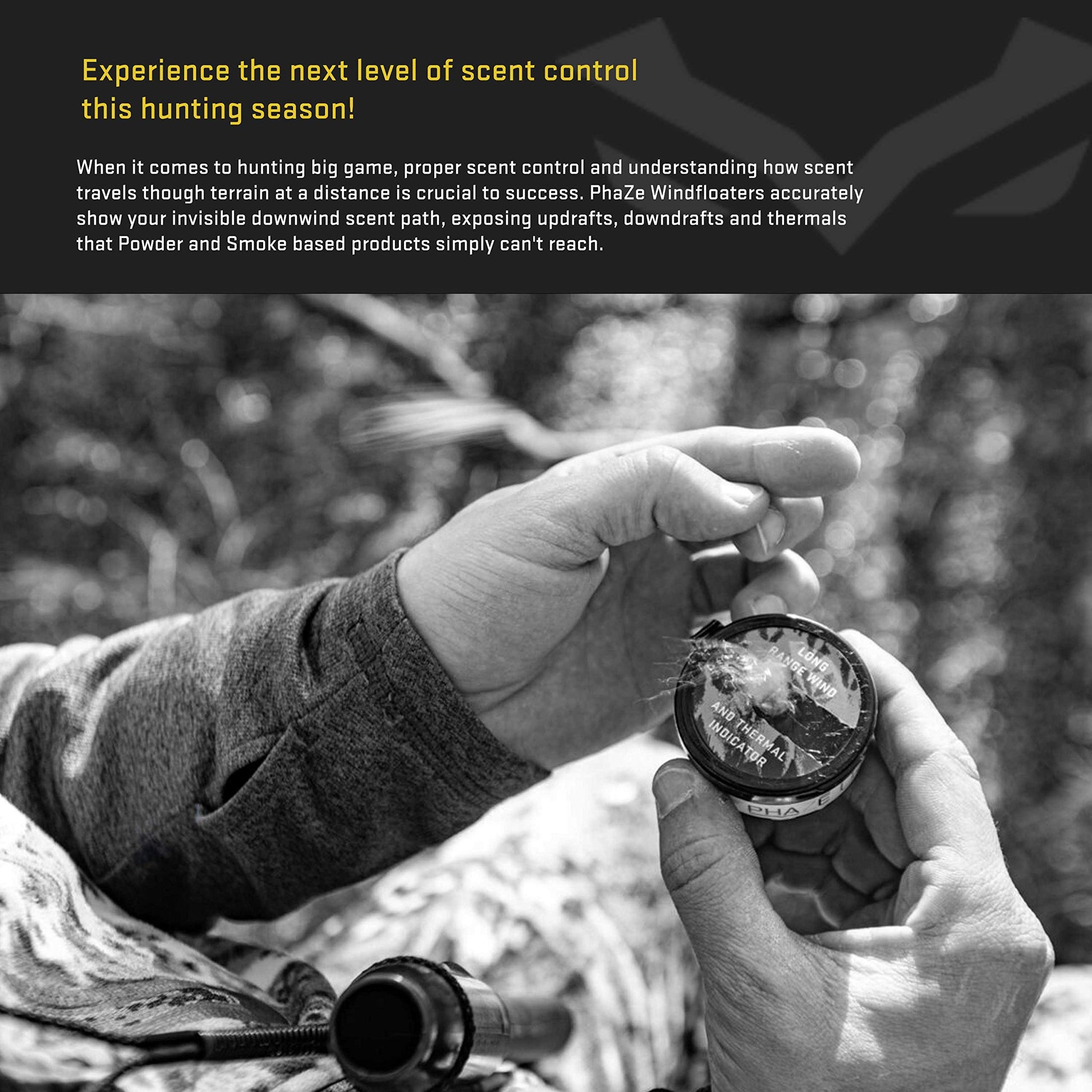 - #1 SCENT CONTROL SYSTEM: Experience The NEXT LEVEL in scent control, PhaZe out your human odor in 3 simple steps; PhaZe 1 Body | PhaZe 2 Gear | PhaZe 3 Field. Use PhaZe windfloaters with the PhaZe Body Odor System to establish and protect your downwind side. We take pride in delivering the highest quality products for our customers, AMERICAN MADE!